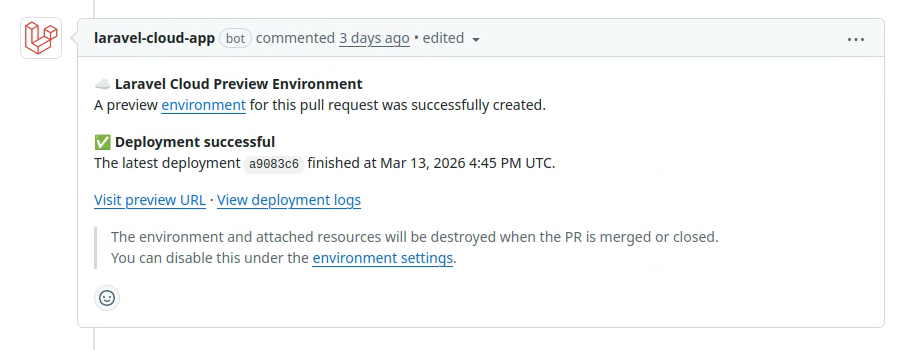 Unfortunately it turned out it's not quite the right fit for us at the moment. We did a trial of running an additional staging environment for the client on Laravel Cloud, integrating it with the client's repository on GitHub so we could test out the preview environments as well.